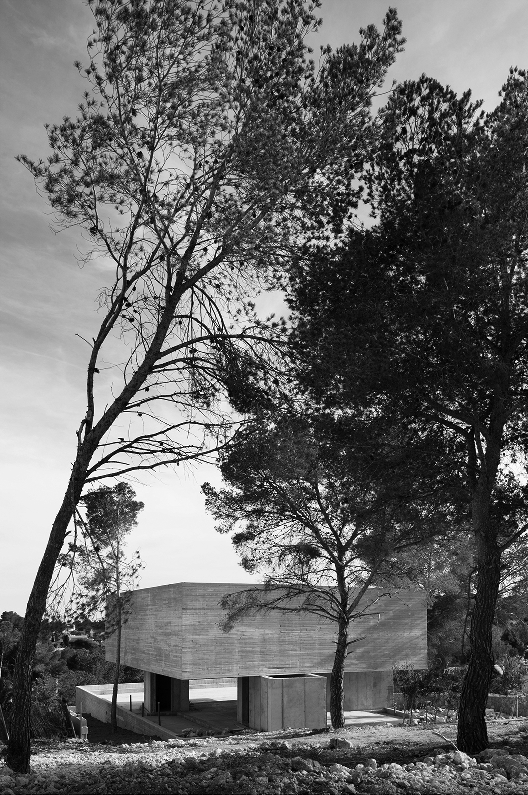 This nomarq project, photographed in the structural construction phase, is a great example of the use of logic and ingenuity, showing that it is possible to design a simple, original solution, whilst simultaneously optimal in terms of resources and spatial needs. The house, called “El Bosque”, is located on a plot in the nucleus of Moraira, in the town of Teulada, north of the province of Alicante. Its name comes from the area on which it is built, del Advocat pine forest.